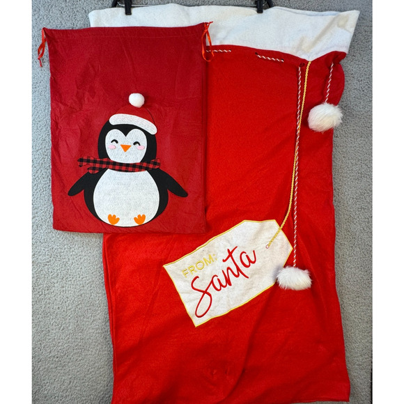 Christmas Santa Sack Set Of 2 Gift Bags Penguin And Santa Note Large Medium