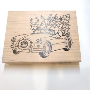 Christmas Santa Stamp, Wood Mounted Rubber Stamp, Stampendous Santa Cruising Sta