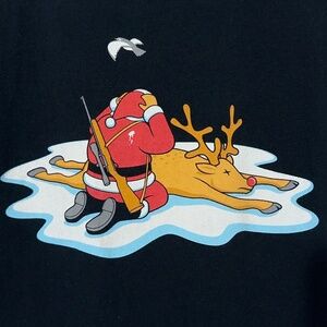 Christmas Santa TShirt Size M Funny Dark Humor Hunting Rifle Reindeer