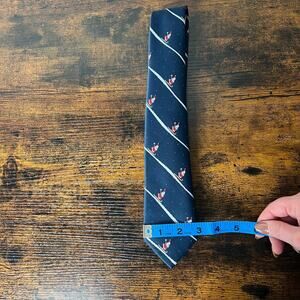 Christmas Santa Tie Skiing 3" Slim Necktie Navy Red Novelty Snow Stripe Holiday