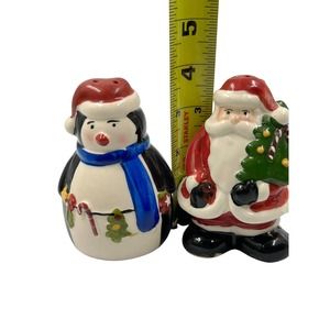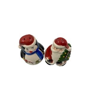 Holiday Christmas Santa and Penguin salt and pepper shakers. No chips or cracks.