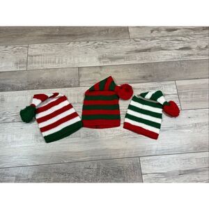 3 Red and green striped Santa hats/elf hats/sock hats/winter hats.