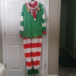 Christmas Santa Elf outfit one piece hooded holiday party ugly sweater Sz L NWT