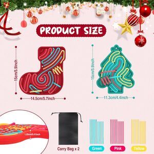 Christmas Themed Sensory Toy Set: Celebrate the holidays with our 2-piece Christmas sensory activity board set, featuring a festive Christmas tree and stocking design. Each set includes 35 silicone rods and comes with a convenient travel bag for on-the-go play - perfect for keeping kids entertained at restaurants, airports, or waiting rooms. This screen-free toy encourages hands-on fun, promoting a healthier, more enriching childhood