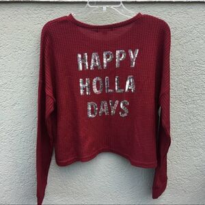 Christmas Sequins Happy Holla Days Red cotton Reindeer Top Size Large