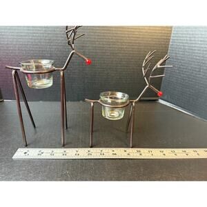 Christmas Set Of Two Iron Reindeer Tea Light Candle Holders