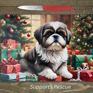 Christmas Shih Tzu Kitchen Tempered Glass Cutting Board or Trivet