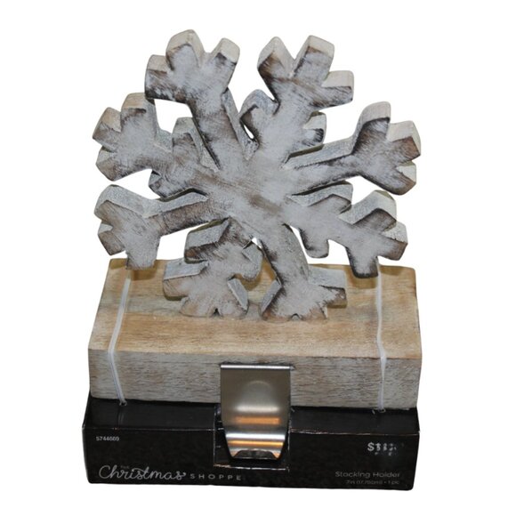 Cute snowflake stocking holder by The Christmas Shoppe from Hobby Lobby. It is brand new with packaging! Measure 7". Nice heavy stocking holder. Cute stocking holder! Rare and hard to find!