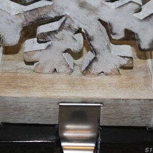 Christmas Shoppe Snowflake Stocking Holder Hanger White Tan Rustic Country NEW