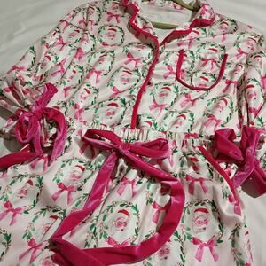 Christmas Shorty Set Santa Pink Bows Silky Soft Look Unworn 3/4-Ruffled-Sleeves