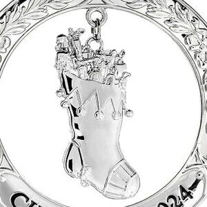 Christmas Silver 3" x 3" Wreath with Stocking Pendant Engraved Tree Ornament