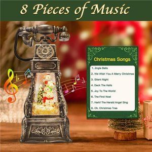 🧿MUSIC PLAYING:Inside glitters and swirling continuously when you turn on the glitter water snow globe , it cyclic plays 8 Christmas themed music, Jingle Bells, We Wish You a Merry Christmas, Silent Night, Deck the Halls, Joy to the World, The First Noel, Hark! The Herald Angel Sings and Oh, Christmas Tree.