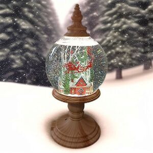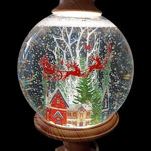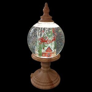 Christmas Snow Globe Lighted Swirling Glitter Santa Claus Reindeer Sleigh Ganz