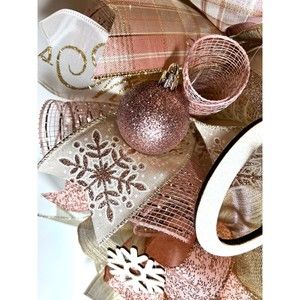 Christmas Snowflake Holiday Ribbon Door Wreath Handmade 22 ins LED W42 Gold Pink