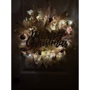 This wreath is built on a 14 frame. Perfect for decorating your home for Winter/ December Holidays/ Christmas . Fitted with 20 LED lights to illuminate at night; 3 modes.
