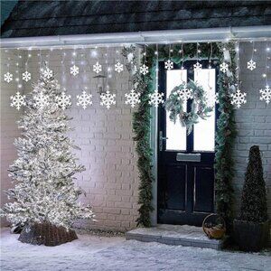 🧿Unique Design Christmas Snowflake Lights: This Christmas lights are composed of 22 strands of led string lights, 11 large snowflakes and 11 small snowflakes. The large snowflake is 7.9in diameter, which each string droops 27.5in; small snowflake diameter is 3.94in diameter, each string drops 15.7in. These LED Christmas lights are specially designed for indoor outdoor Christmas decorations, eaves, windows, curtains