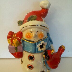 Christmas Snowman Cardinal Ceramic Lighted Figurine Gold Paint Highlights Gift. Pre-owned item in good condition, has slight wear as you'd expect from a used item. Small paint peeling on bird tail refer to pictures. Please use the zoom feature to determine shape and condition, check all pictures and measurements carefully for detailed viewing as they are part of the description and help you with your purchase. I invite you to always check my new listings, buy with confidence. Smoke free home. Thank you, have a wonderful day!!