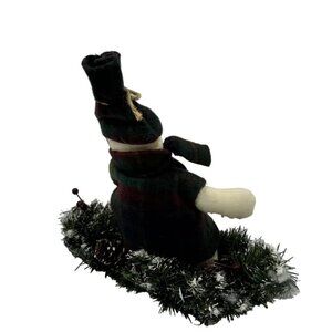 Christmas Snowman On Grass Sled Plush Doll With Shovel & Greenery Wreath Festive
