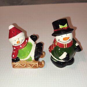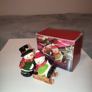 Christmas Snowman Salt and Pepper Shakers Collectible Ceramic with Original Box