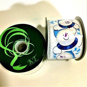 Christmas Snowman Wired Ribbon 2.5" X 10 Yard White Blue Metallic Silver 2 Spool