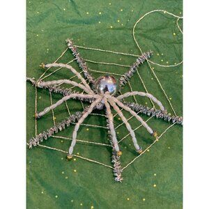 Christmas Spider Ornament 5 in Handcrafted Beaded Holiday Festive Gift Silver