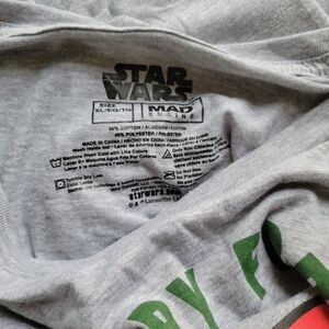 Celebrate this Christmas season in style with this Star Wars-themed unisex top. The gray crew neck tee features a Stormtrooper character design, perfect for casual occasions. The shirt is made from a comfortable cotton blend material with a jersey fabric type, ensuring a regular fit for all body types. This T-shirt is machine washable and comes in an XL size, making it a great gift for any Star Wars fan. The short-sleeved tee with casual sleeve type and stretch features can be worn in any season, be it winter, summer, fall, or spring. Get this Christmas-themed top and may the Merry Force Be With You.