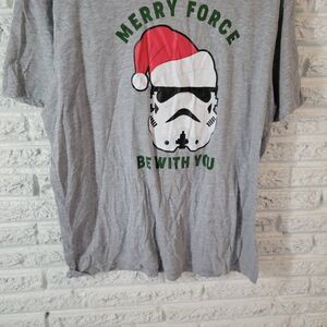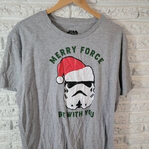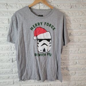 Christmas Star Wars Unisex Top Extra Large Tee Merry Force Be With You Gray Crew