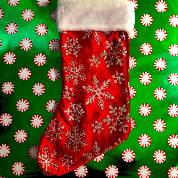 Red Christmas Stocking with silver glitter stars on both sides. Used only one year.