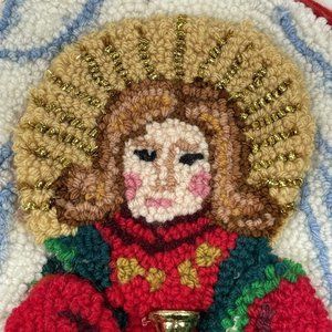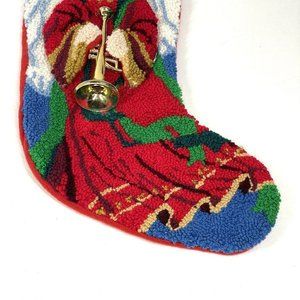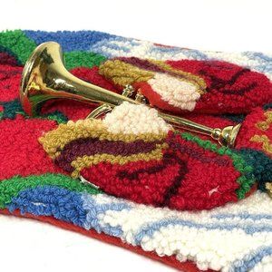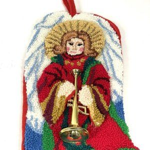 Christmas Stocking Angel Gold Trumpet Horn Needlepoint Velvet Back Red