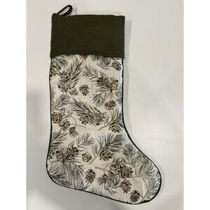 Christmas Stocking Cream Satin Olive Green Burlap Trim Pinecones Gold Details
