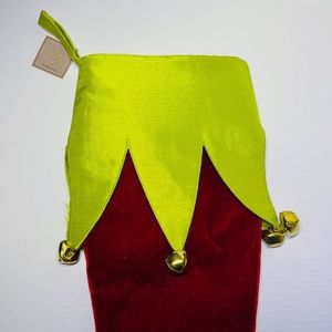 Christmas Stocking D Stevens Red Green Elf Boot With Jingle Bells 23" 18-3552