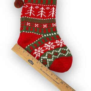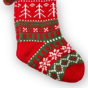 Christmas Stocking Fair Isle Sweater Knit Snowflake Green Red White Acrylic
