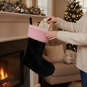 Christmas Stocking Handmade Velvet Velour Gossip Girl Pink Sherpa Gift NEW