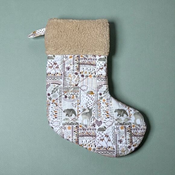 Brand new, handmade stunning woodland animal cabin themed Christmas stocking. Perfect for the upcoming holiday season!