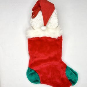 Christmas Stocking Santa Red w/ Santa Head Top Open Preowned 80s 90s Stocking measures 20 H x 7.5 W Stocking is in great condition. Please see all photographs for condition details .