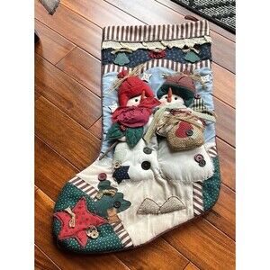 Christmas Stocking Snowman Farmhouse Country Large Quilted Vintage Stockings