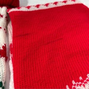 Christmas Stockings Knit with Pom Poms Set of 2 Woven Vintage Wreath and Reindeer Design, Green Red White