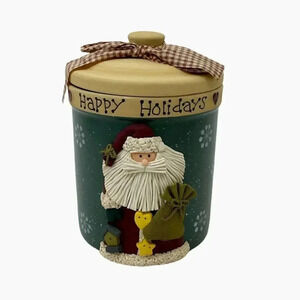About 6” H NEW Christmas Stoneware Enesco Cookie Jar Santa Claus Spaghetti Beard