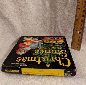 Vintage Christmas Stories film reel featuring Santa and a Christmas tree. Perfect for holiday collectors.