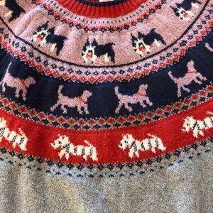 Christmas Sweater Dog Theme Fair Isle With Silver Metallic Sparkle