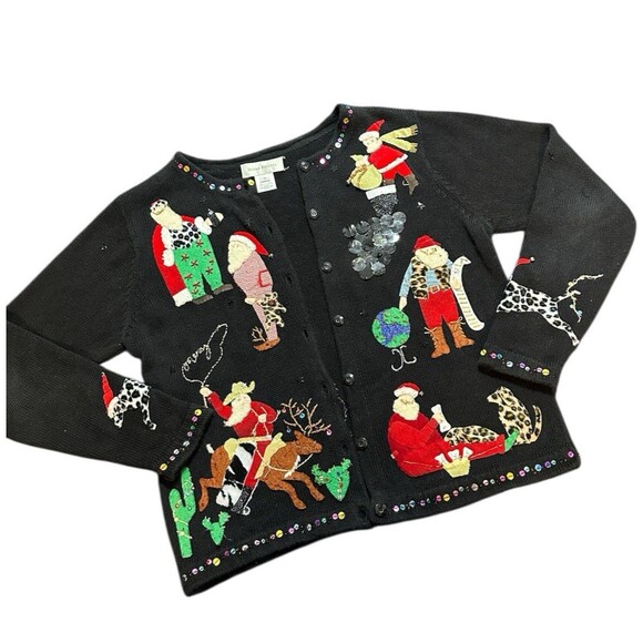 Vintage 2000 Susan Bristol Santa Claus Christmas sweater. Women's size M.