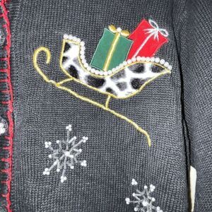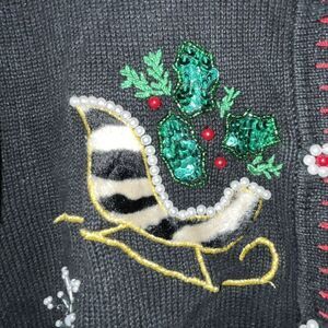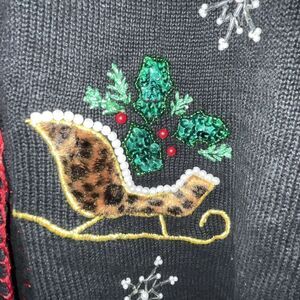 Christmas Sweater Size Medium Black Animal Prints Sleds Pearls Snow