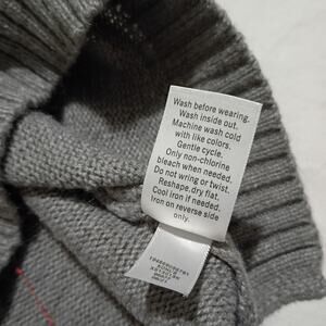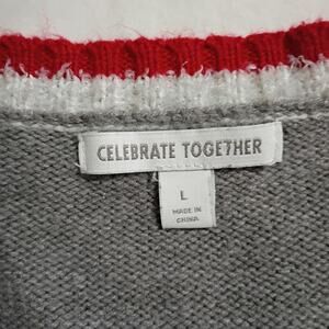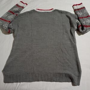 The sweater comes in a delightful grey, red, and white color scheme. Made from super soft material, it's perfect for staying warm and stylish throughout the holiday season. It is also machine washable for easy care.