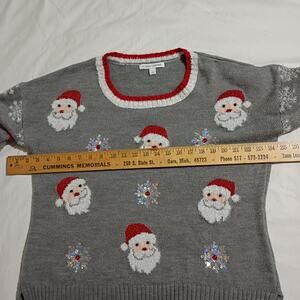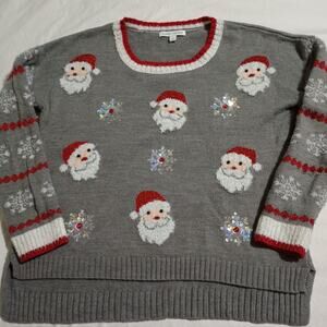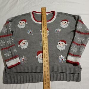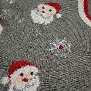 Christmas Sweater Women's L 3D Santas Sequins Faux Fur High-Low Oversized Tunic