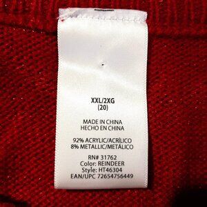 Christmas Sweater Womens XXL Red Reindeer Design Jingle Bells Accents