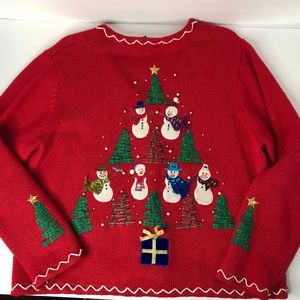 Snowman Christmas sweater/cardigan. Size P/M Measurements in listing. A small snag shown in photos. Not perfect, but still very nice condition. See all photos! Thanks!