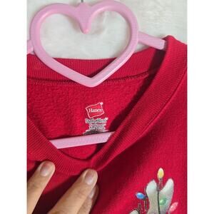 Christmas Sweatshirt Plus XL Hanes Dog in Christmas Tree Lights Holiday Cozy