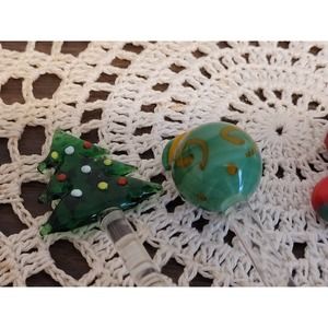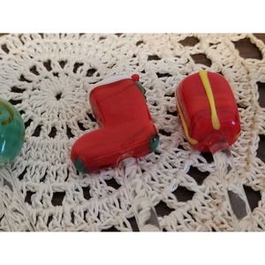 Christmas Swizzle Sticks Hand Blown Glass Stir Tree Ornament Stocking Package