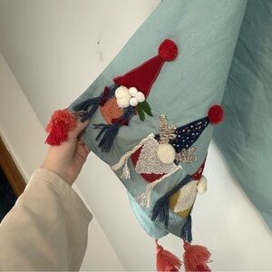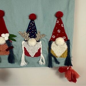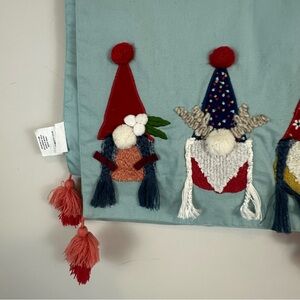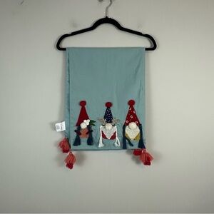 Christmas Table Runner Holiday Blue Teal Embroidered Gnomes 13 In X 72 Pom Pom