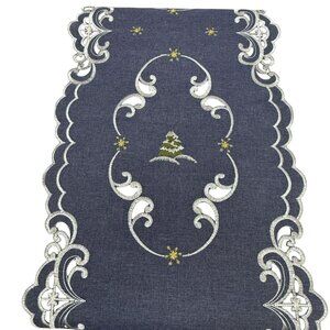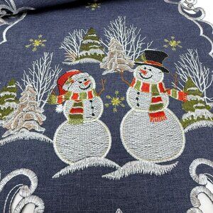 Christmas Table Runner Holiday Snowmen Blue 67" Long Embroidered